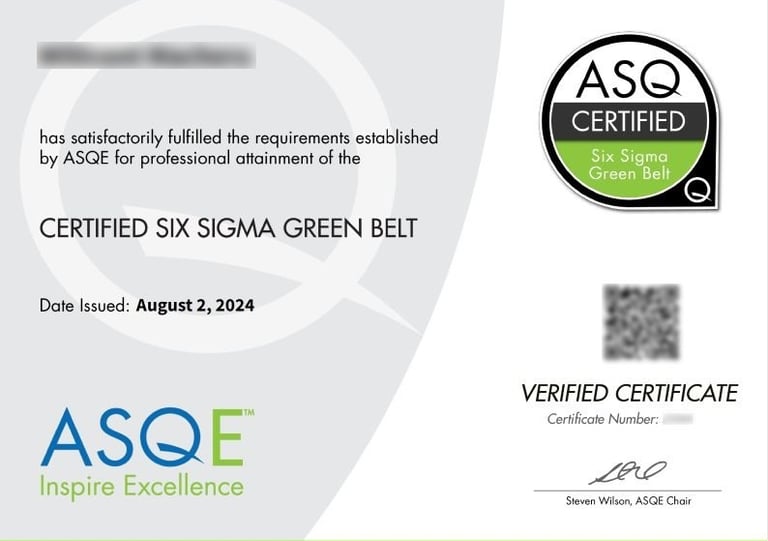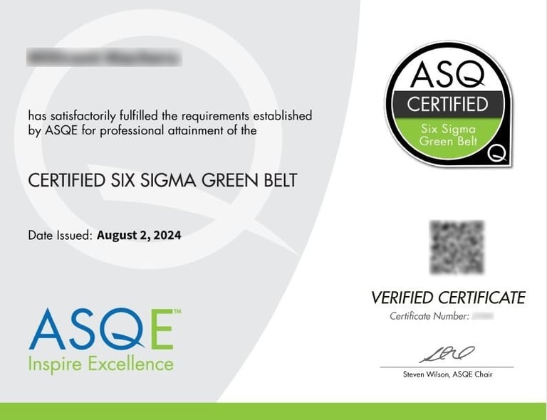✔ Aligned with ASQ, IASSC, and CSSBB Lean Six Sigma Green Belt standards.